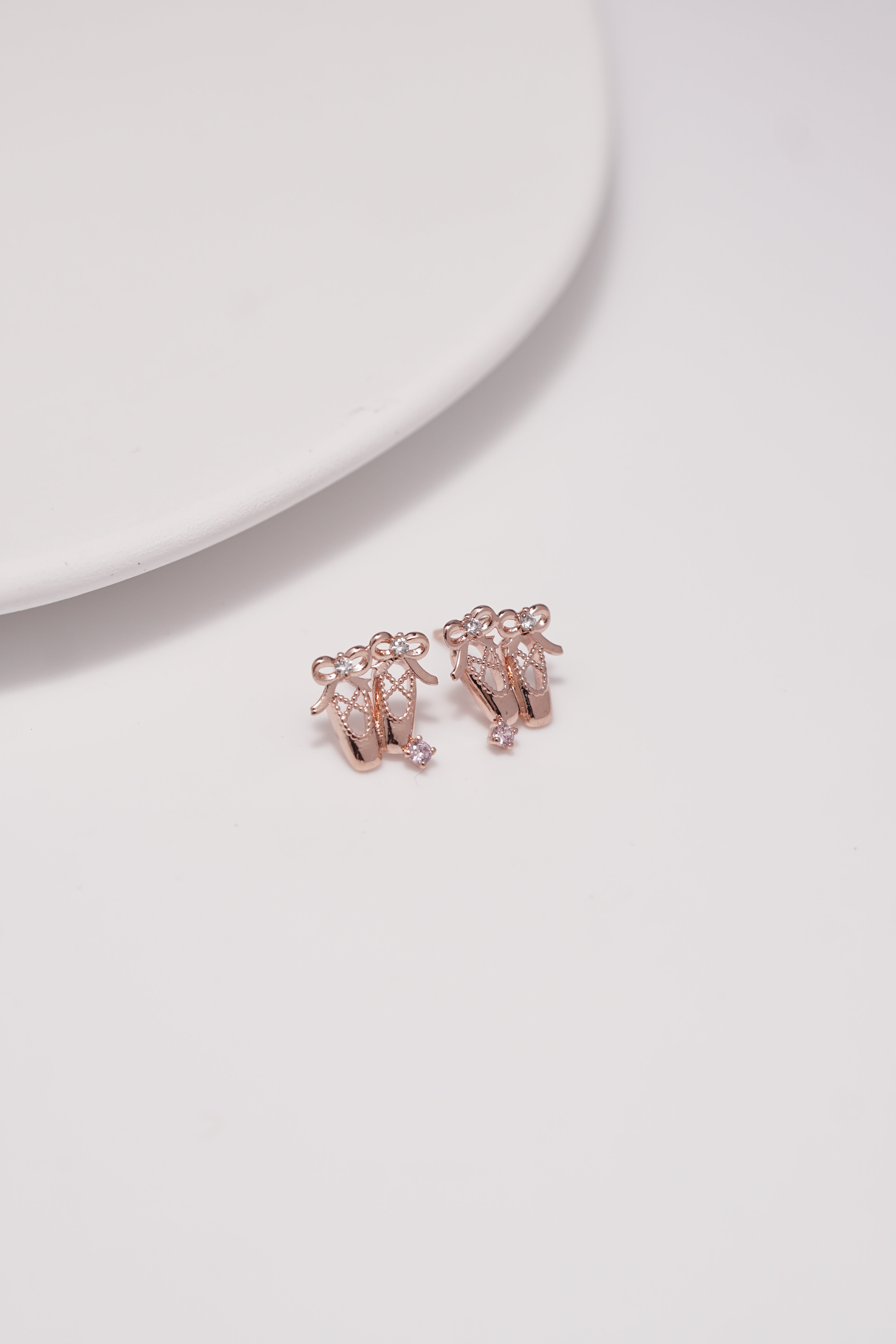 Step into elegance with these Bow Ribbon Ballerina Shoes Stud Earrings, a delicate tribute to the grace and beauty of ballet. Featuring intricately designed mini ballet slippers with a dainty bow accent, these earrings capture the feminine charm and sophistication of a dancer. The rose gold-plated finish adds a touch of luxury, while the sparkling cubic zirconia detail provides an extra hint of brilliance.