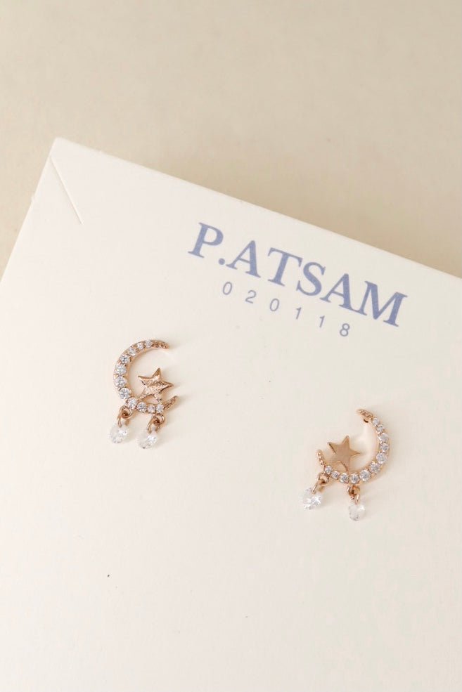 Shine bright like the stars with these handmade Korean moon & star earrings, designed for those who adore celestial-inspired jewelry. Featuring a crescent moon and star motif, these gold-plated earrings are adorned with sparkling crystals and delicate dangles, adding a touch of magic to your everyday style.