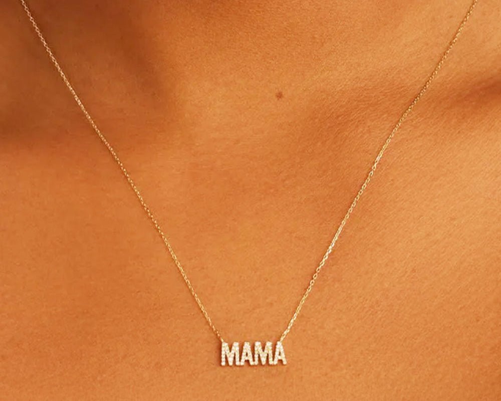 Celebrate the strength and beauty of motherhood with the Pretty At Sam 14K Solid Gold MAMA Pendant Necklace — a sparkling tribute to every amazing mama. ✨