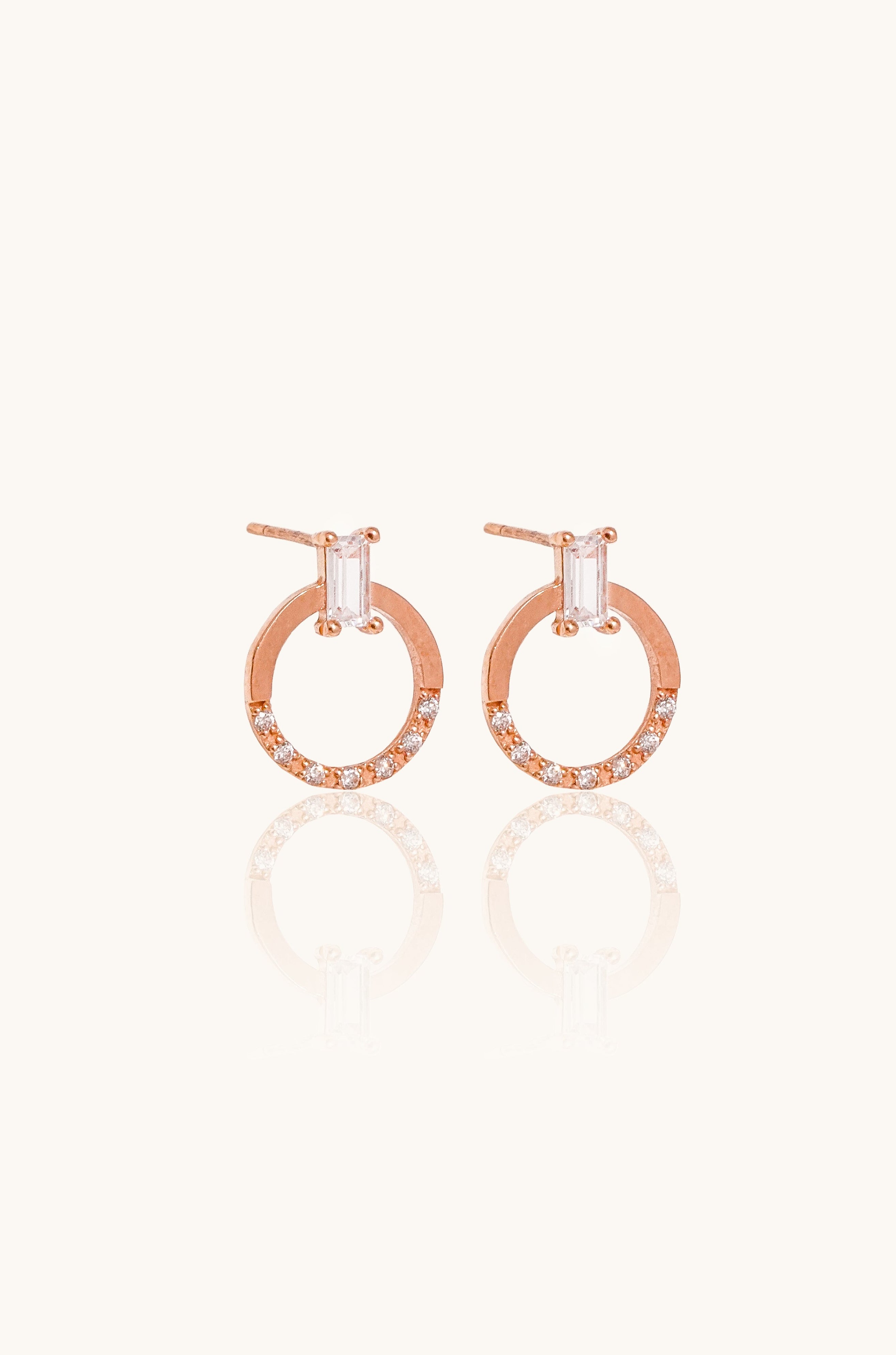 A fusion of geometric sophistication and timeless sparkle, the 14K Solid Rose Gold Baguette & CZ Circle Stud Earrings are the perfect blend of minimalist elegance and modern charm. These studs feature a brilliant baguette-cut cubic zirconia stone set above a delicate open circle, half-paved with shimmering CZ accents for a luxurious touch.