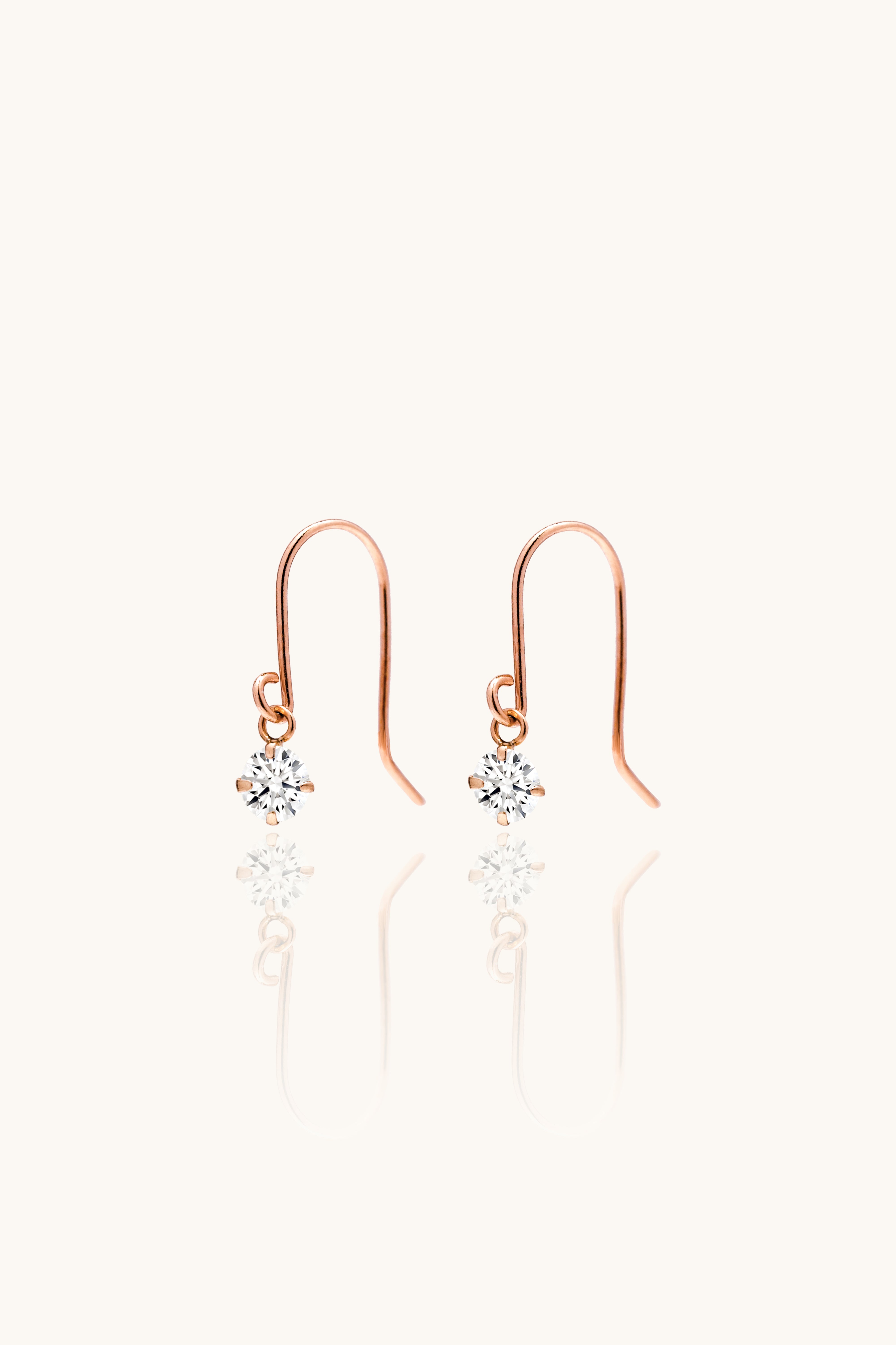 Discover effortless elegance with the 14K Solid Rose Gold Fish Hook Cubic Dangle Earrings, a sleek and modern accessory designed for refined sophistication. Featuring a graceful fish hook wire for a seamless, lightweight feel, these earrings are adorned with sparkling cubic zirconia accents that catch the light with every movement.