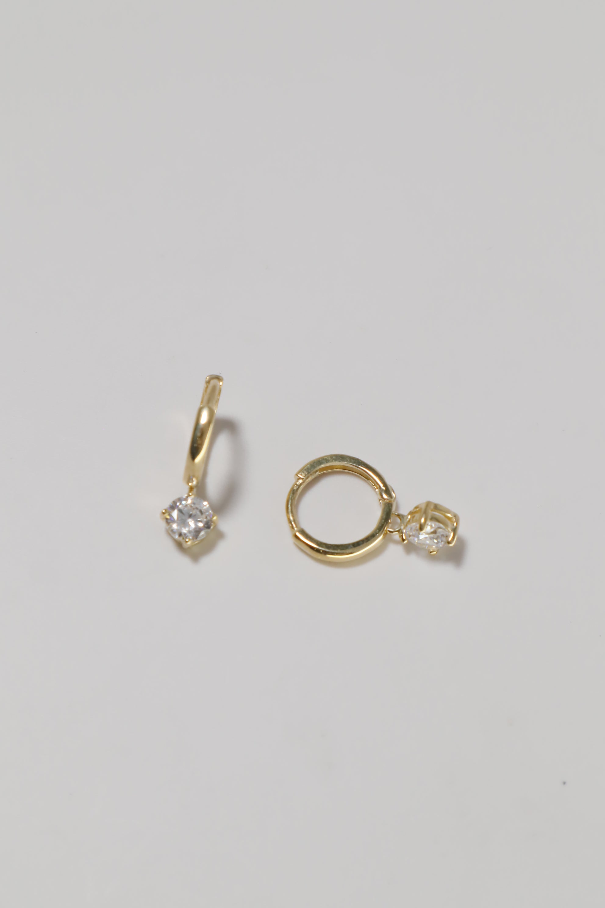 The minimalistic hoop design is enhanced by a dangle cubic zirconia, adding a touch of sparkle to any outfit. Crafted from premium 14K gold, these earrings offer both style and longevity.