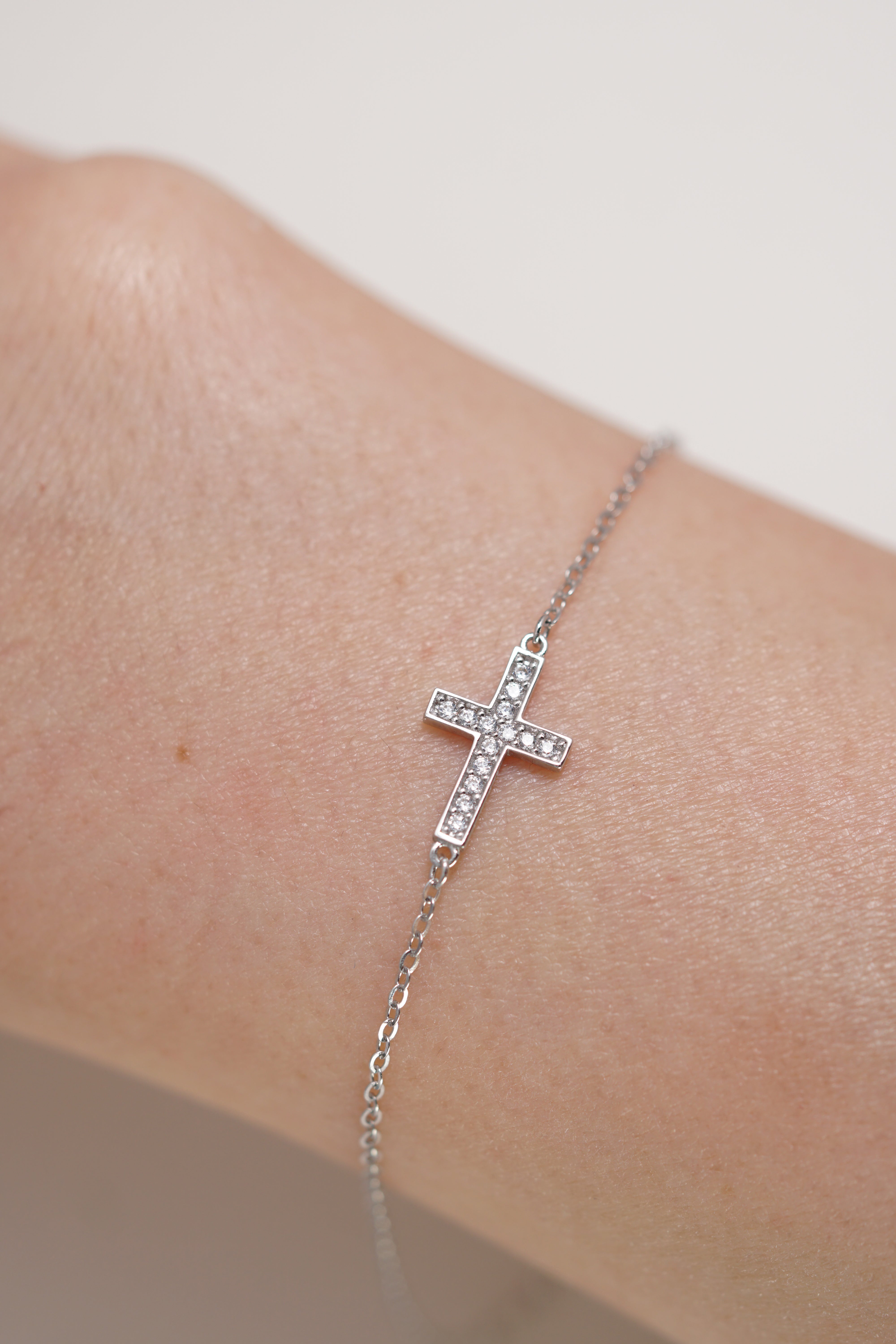Embrace the elegance of faith with the 14K Solid White Gold Cross Charm With CZ Stone Bracelet. This beautiful bracelet features a delicate cross charm adorned with a sparkling cubic zirconia (CZ) stone, symbolizing both devotion and style. Crafted from solid 14K white gold, this bracelet offers a sleek and refined look, perfect for any occasion. The subtle yet striking design makes it a versatile accessory, whether worn alone or layered with other pieces. Expertly crafted for lasting durability, this bracelet is a meaningful addition to any jewelry collection.