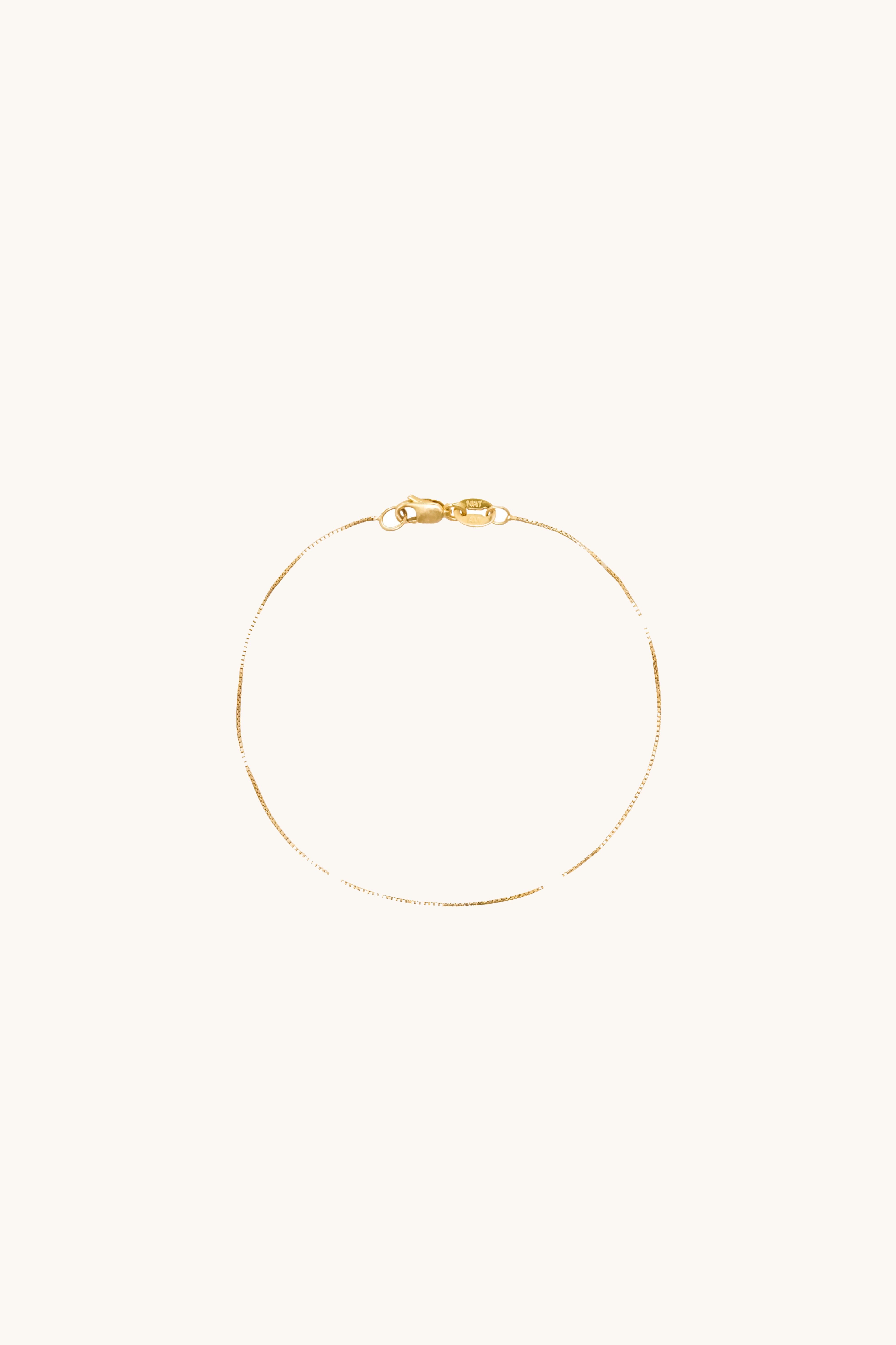 Add a touch of refined elegance to your wrist with the 14K Solid Gold 0.5mm Box Chain Bracelet. This beautifully crafted bracelet features a sleek and durable 0.5mm box chain design, offering a subtle yet sophisticated shine. Crafted from premium 14K solid gold, this bracelet is perfect for layering with other pieces or wearing alone for a minimalist, chic look. Its delicate design makes it a versatile accessory, ideal for both everyday wear and special occasions.