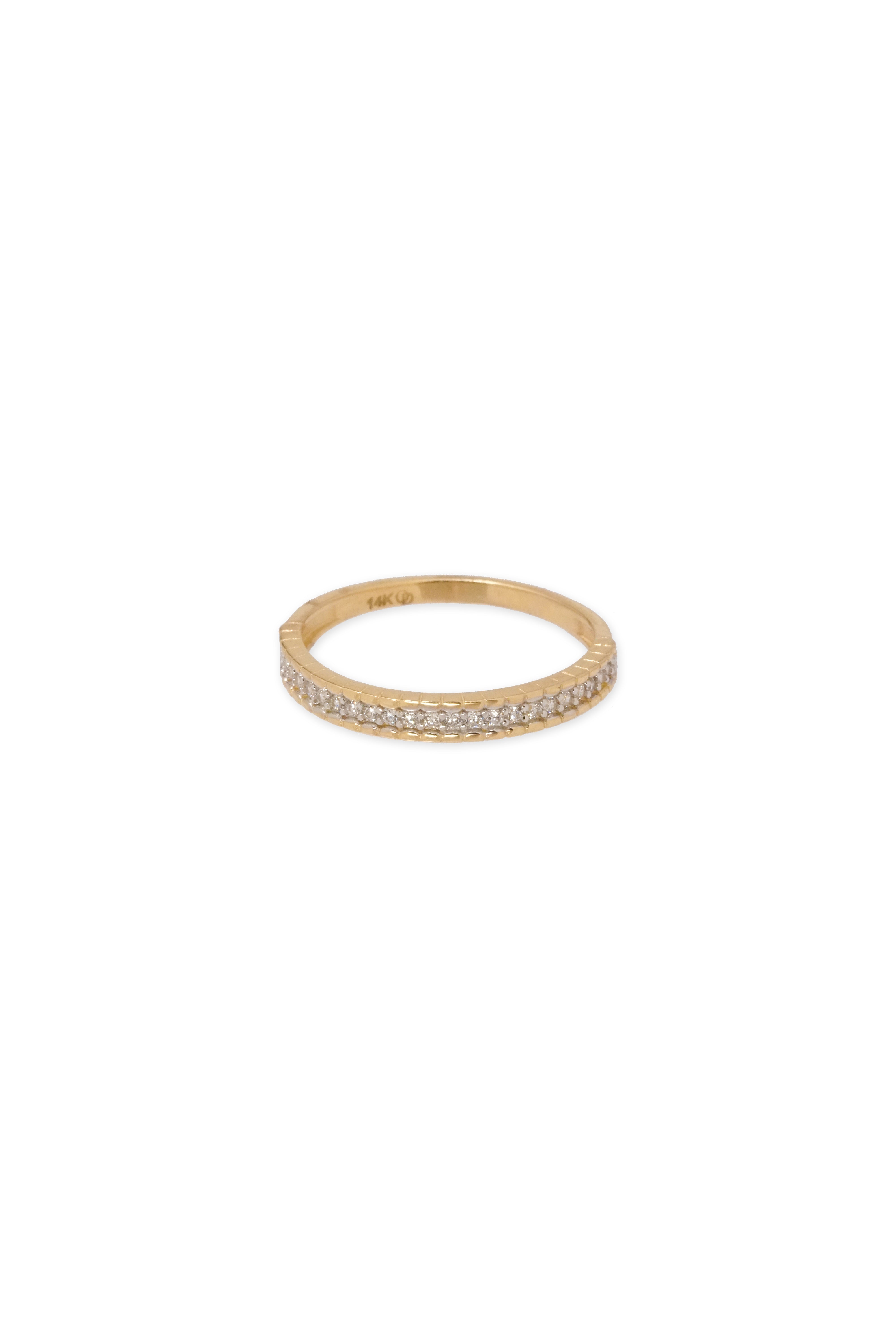 Experience timeless elegance with the 14K Solid Yellow Gold CZ Channel Setting 2.7MM Ring. This exquisite ring features a sleek channel setting adorned with sparkling cubic zirconia (CZ) stones, all set in luxurious solid 14K yellow gold. The 2.7MM band width provides a perfect balance between subtlety and sophistication, making it an ideal accessory for both everyday wear and special occasions. Whether worn alone or stacked with other rings, this piece adds a touch of brilliance to any jewelry collection.