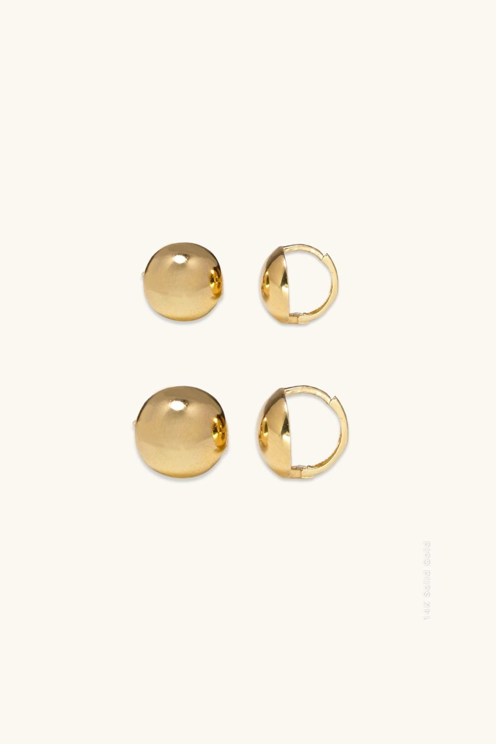 The 14K Solid Yellow Gold Half Ball Hoop Earrings are where minimalist design meets soft dimension. With a rounded half-dome shape in front and a gentle curve that hugs the lobe, these earrings are made to shine from every angle.