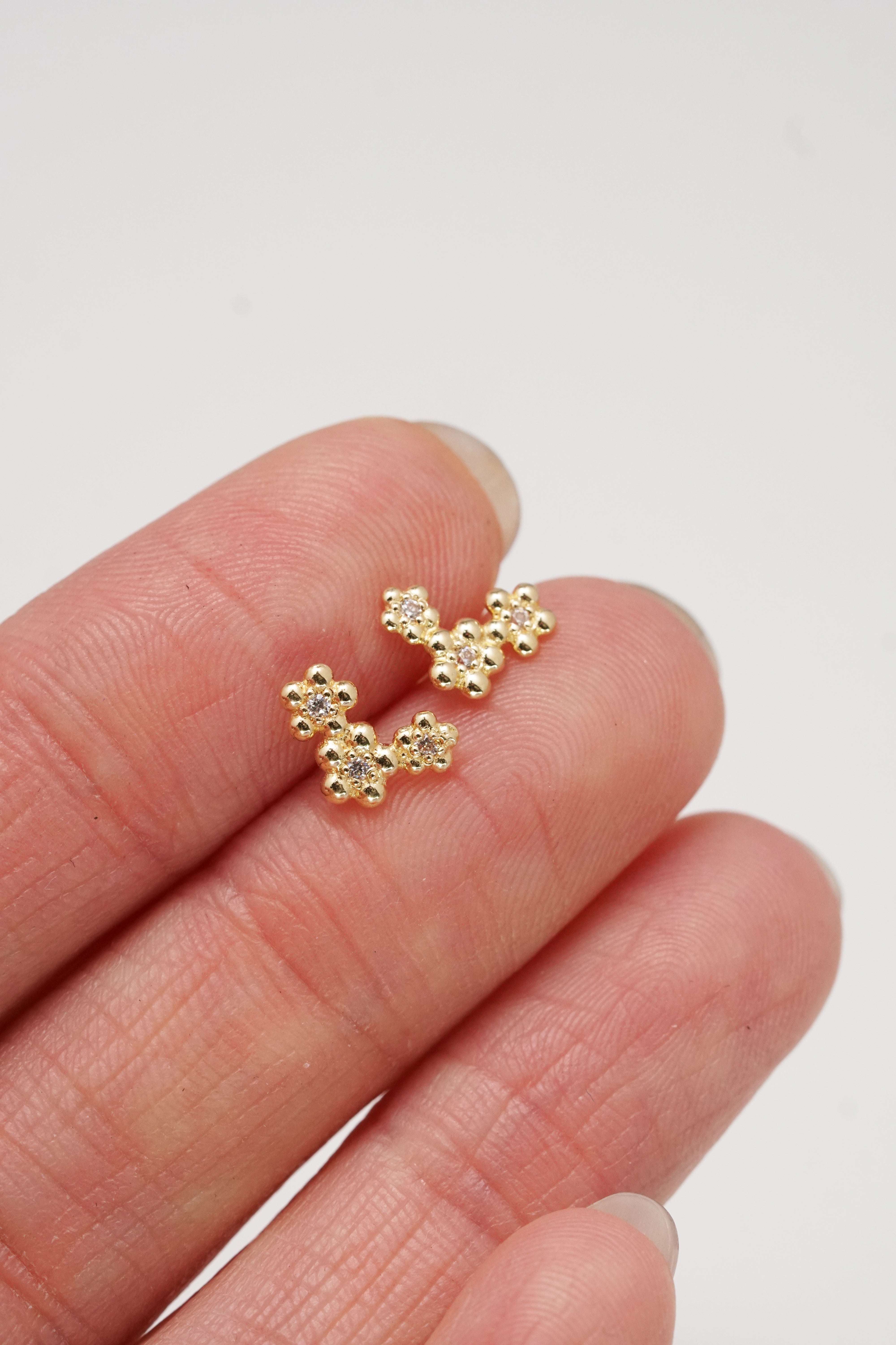 #14KGoldEarrings #KoreanJewelry #FlowerStuds #FloralJewelry #HypoallergenicJewelry #NeverTarnish #MadeInKorea
