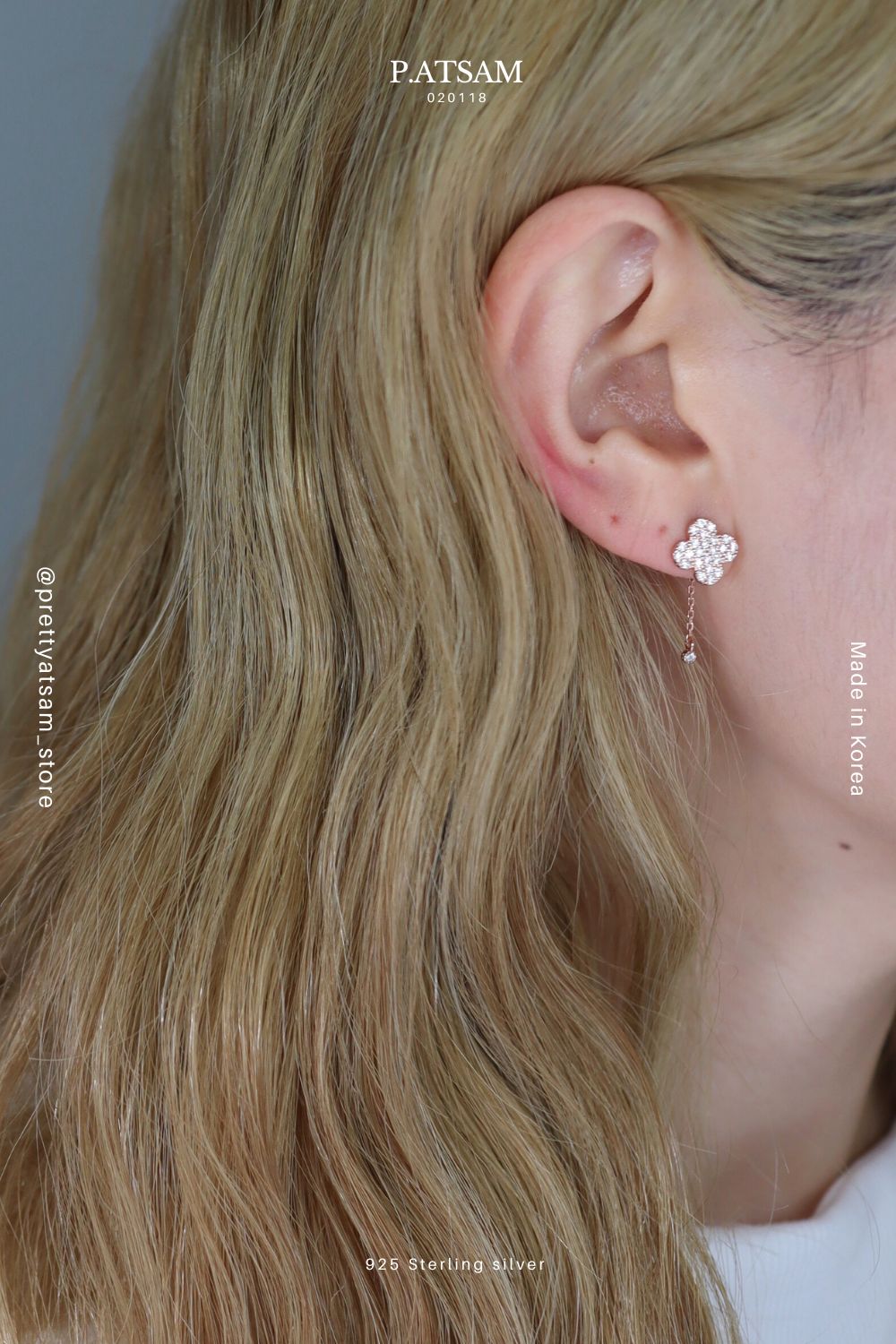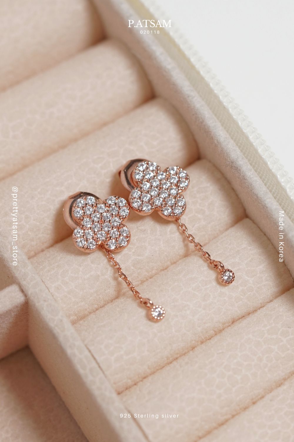 Design: Four-leaf clover CZ stud with elegant rear drop chain