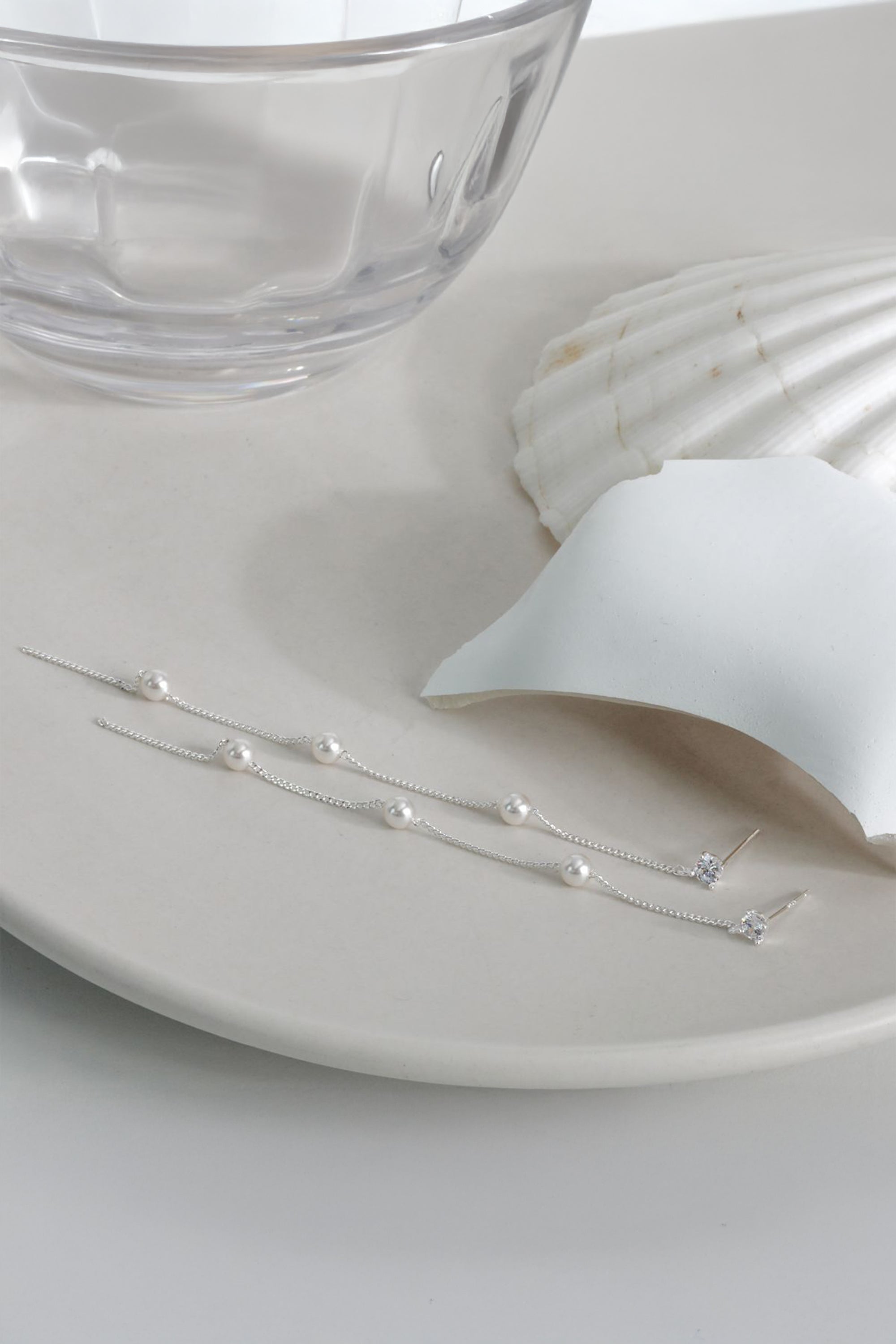 Refine your accessory game with these 925 Sterling Silver Pearl Chain Drop Earrings. Designed with a sparkling cubic zirconia stud at the base and a sleek pushback closure, these earrings feature a delicate chain drop adorned with multiple polished faux pearls. Offered in three elegant finishes—silver, gold, and rose gold—these earrings blend classic pearl charm with a modern silhouette. Lightweight and graceful, they’re perfect for both daily wear and special occasions.