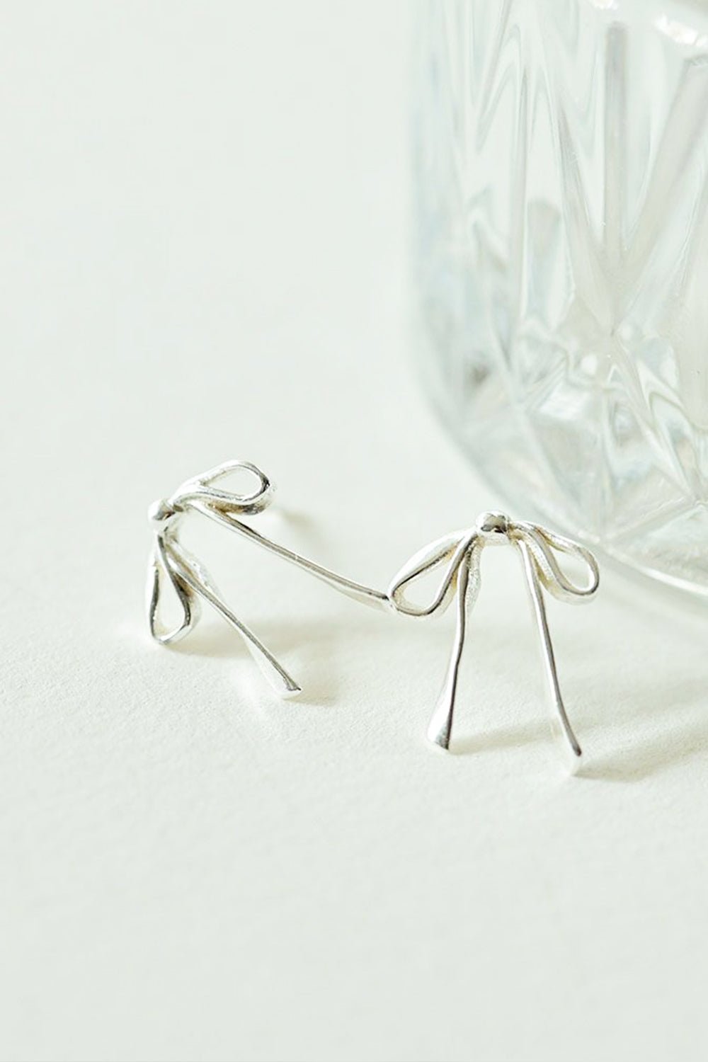 Delicate, flowing, and effortlessly charming. These 925 sterling silver ribbon stud earrings capture the grace of a gentle bow caught in motion. The open, airy silhouette adds a touch of softness and femininity to your everyday wardrobe—perfect for styling solo or pairing with other minimal studs.