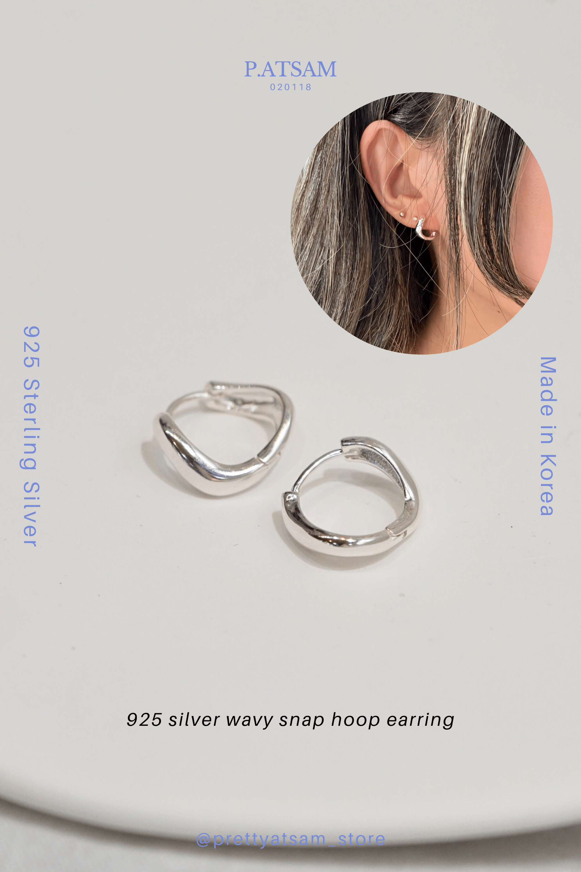 Featuring a unique wavy design, our 925 Sterling Silver Huggie Earrings will add a touch of elegance and modernity to any outfit. Made with high-quality sterling silver, these earrings are both stylish and durable. Elevate your look with these versatile and eye-catching earrings!