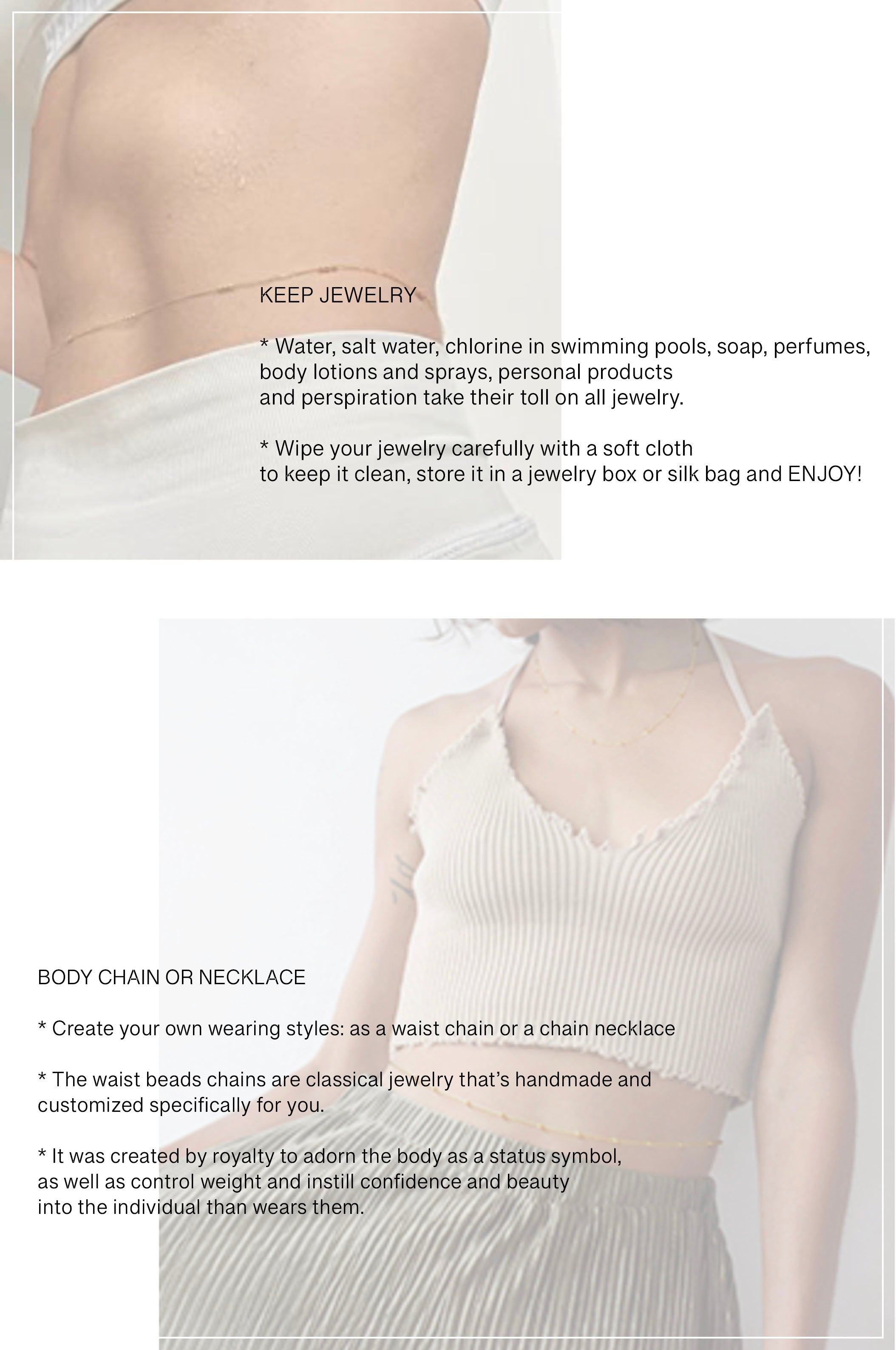 -STORE THE ITEM INDIVIDUALLY INSIDE THE ZIP LOCK WHEN PRODUCT IS NOT WORN.