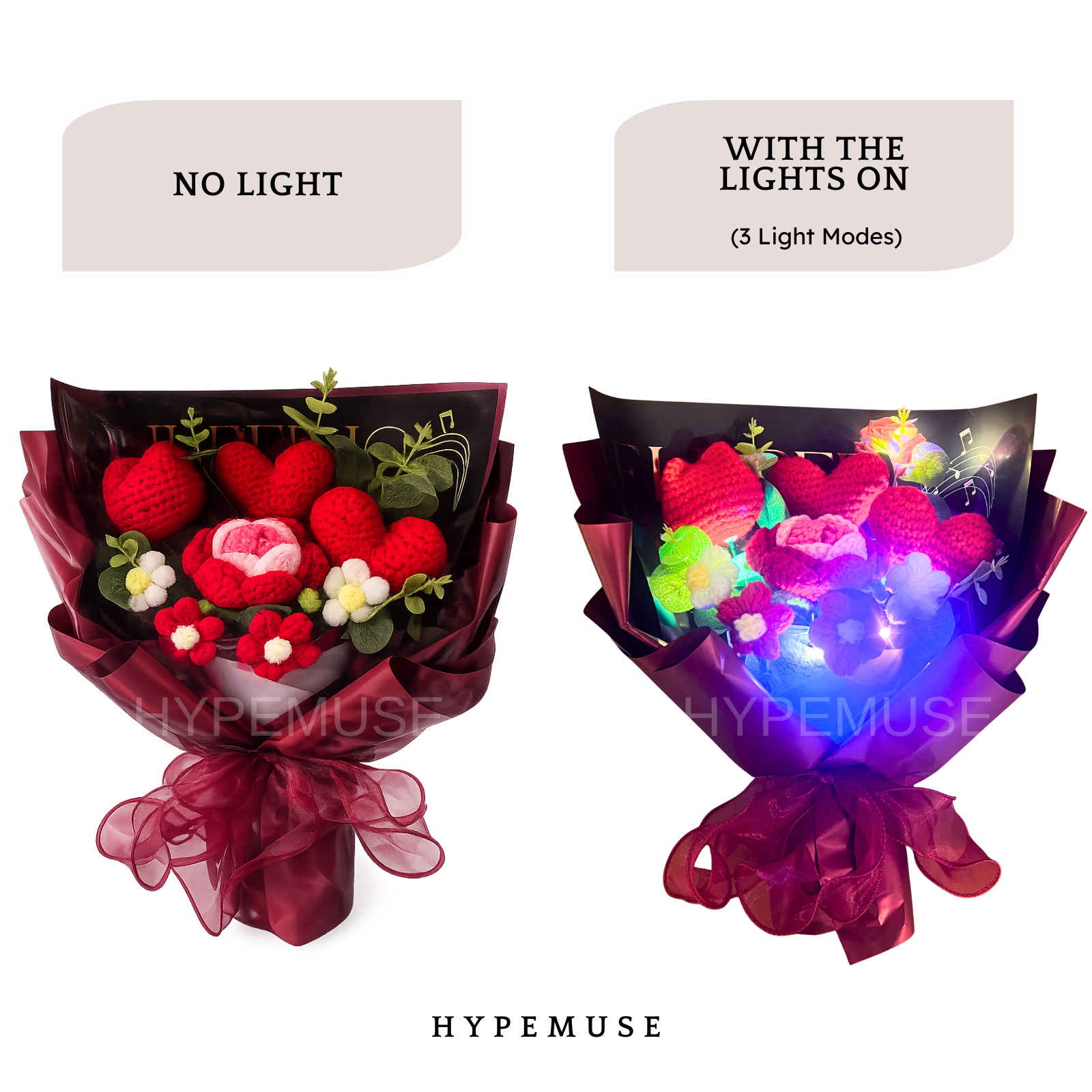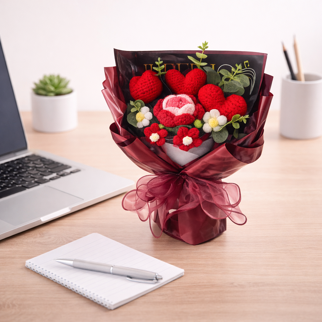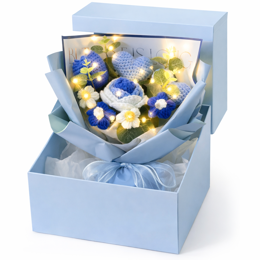 This handmade light-up crochet flower bouquet is a thoughtful alternative to fresh flowers — no wilting, no watering, no worries. Carefully crafted with detailed crochet roses and soft LED lighting, it’s designed to last and glow beautifully in any space.